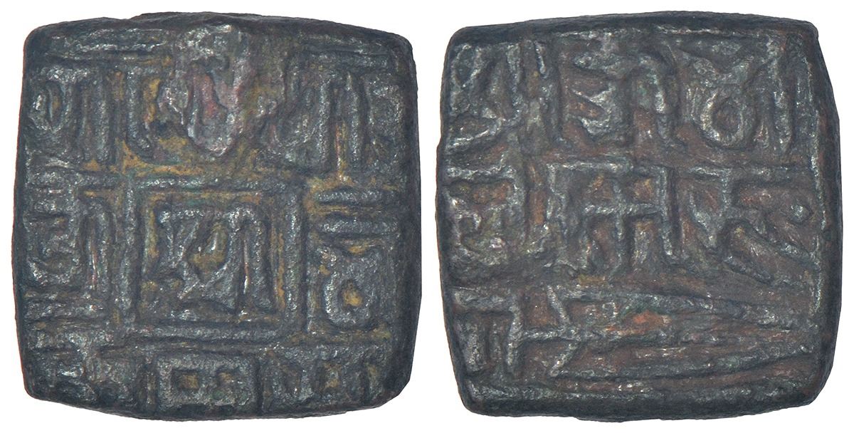 This is an extremely rare type of coins issued by Maharana Kumbha, with the only other specimen known to exist in the British Museum.