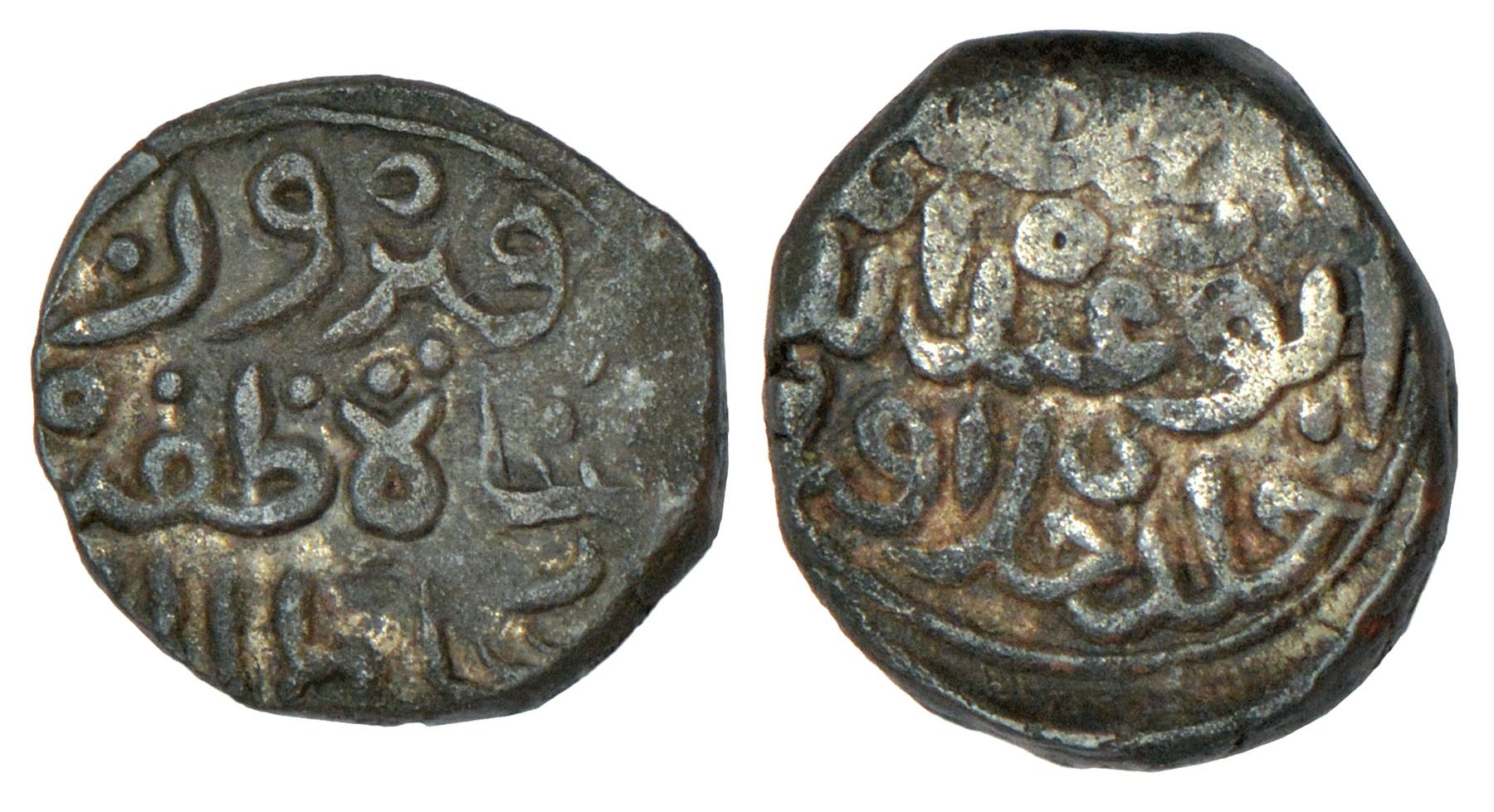 Sultans of Delhi - Tughluqs, billon 1/3rd tanka of Firuz Shah Zafar (1389 AD), G&G D554, 3.39g. Obv: Arabic legend Firuz Shah Zafar Sultani. Rev: Arabic legend al-khalifa abu 'abd allah khulidat khilafatuhu.