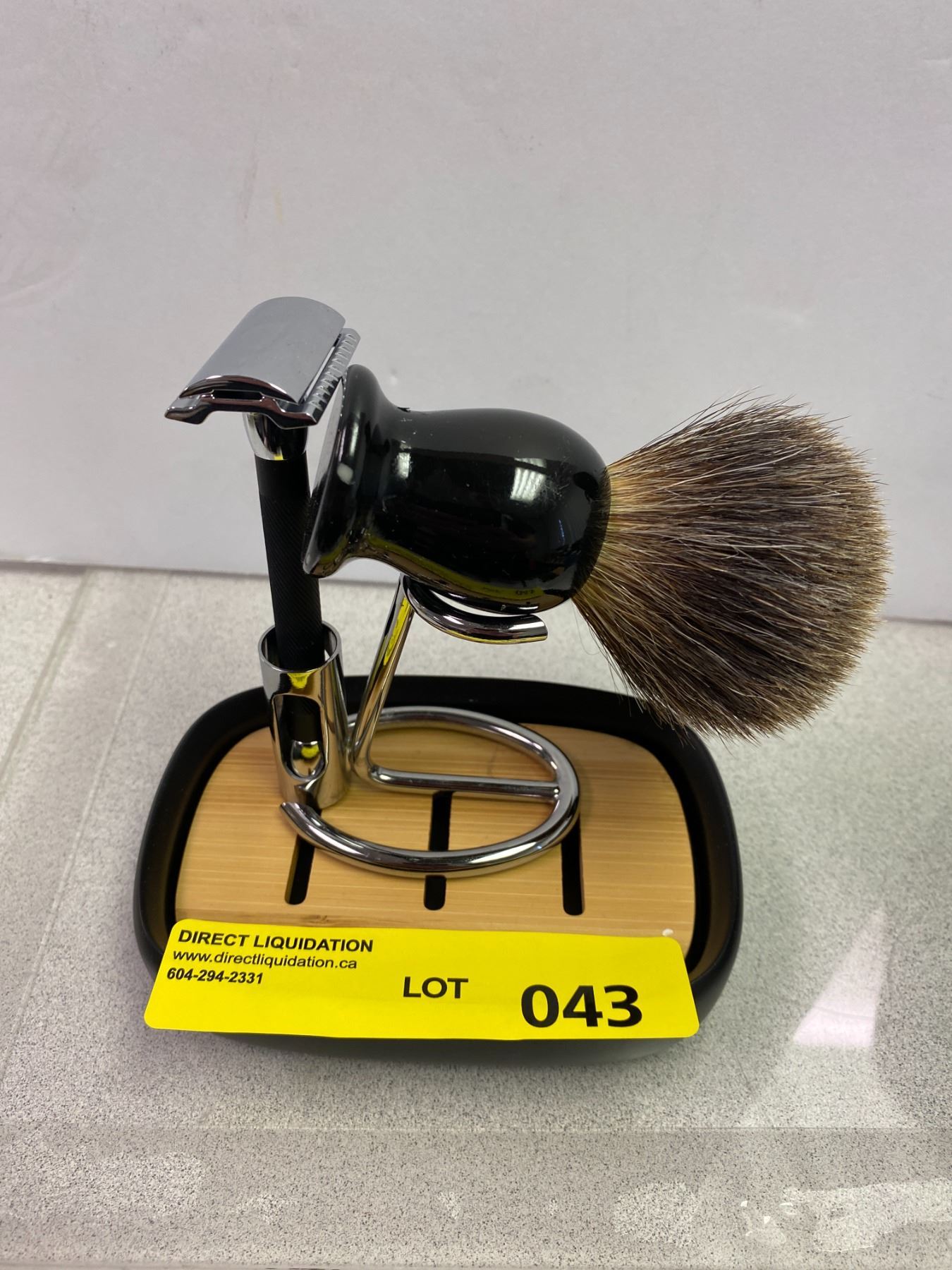 Men's Old Fashioned Straight Blade Shave with Brush, Chrome Stand and Soap Dish
