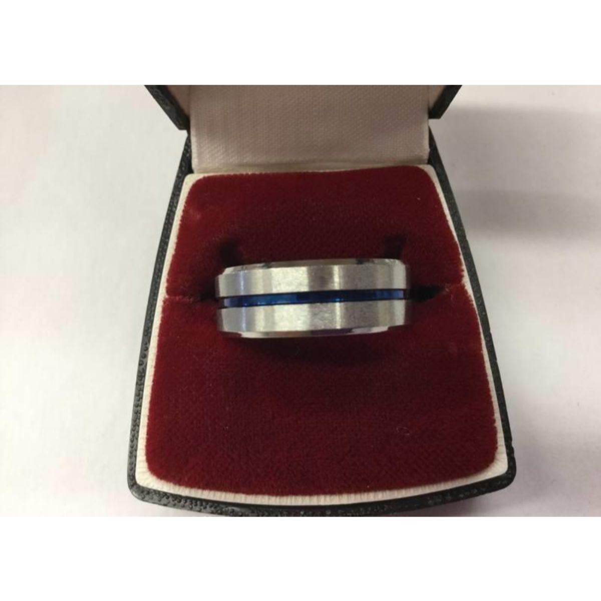 Titanium Steel Silver Brushed, Blue Engagement Ring. Brand New, Size 10. Comes in White Enameled LED Ring Box. See Photos for further inspection.