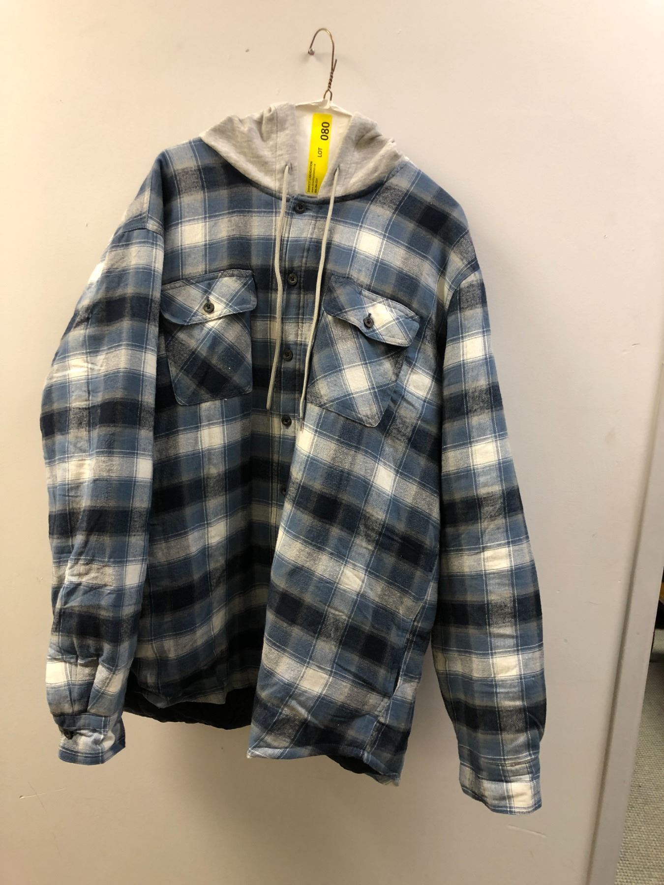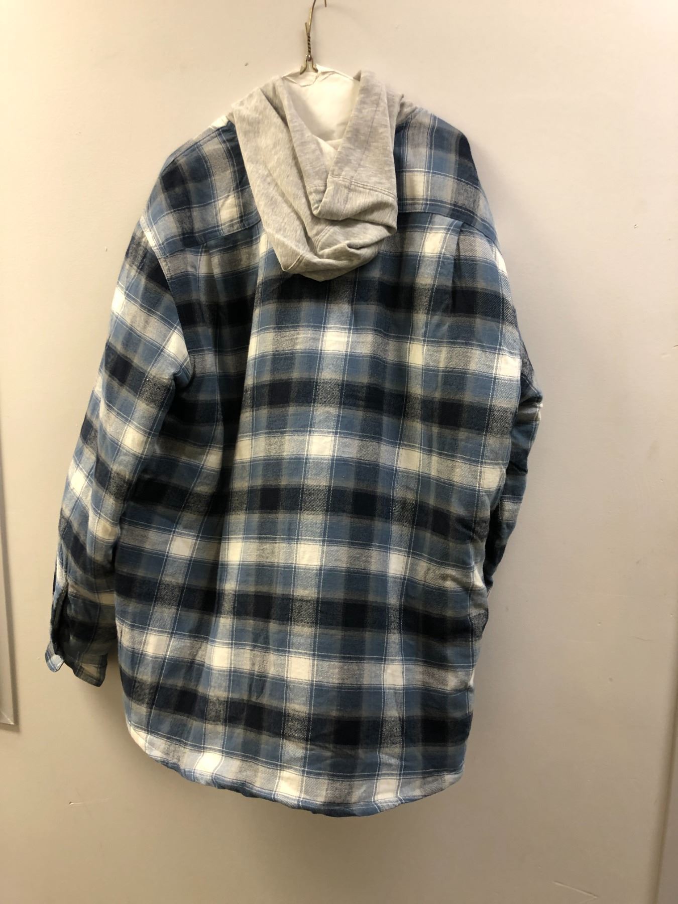 Men's Wrangler Quilted Jacket with Hood - XL (Blue Plaid with grey hood)