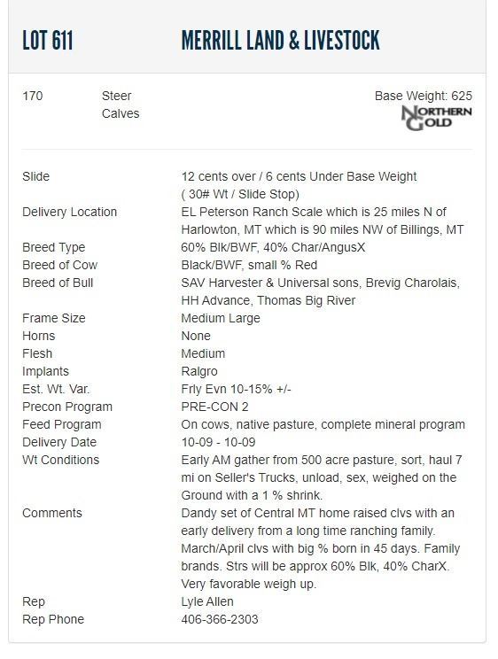 Merrill Land & Livestock - 170 Steers; Base Weight: 625