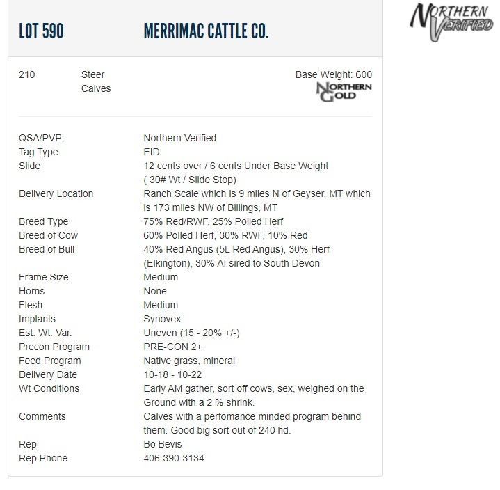Merrimac Cattle Co. - 210 Steers; Base Weight: 600