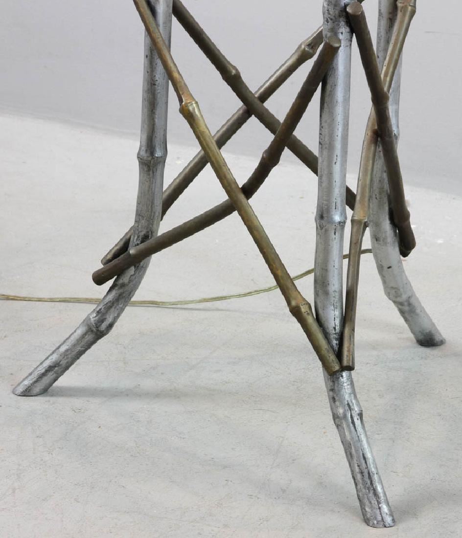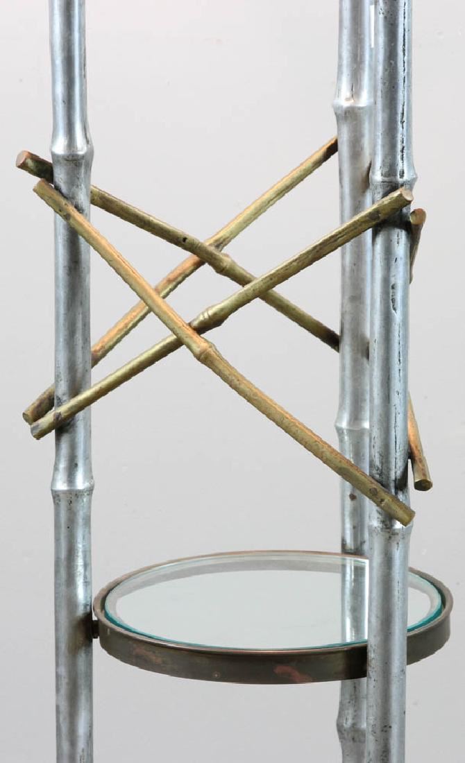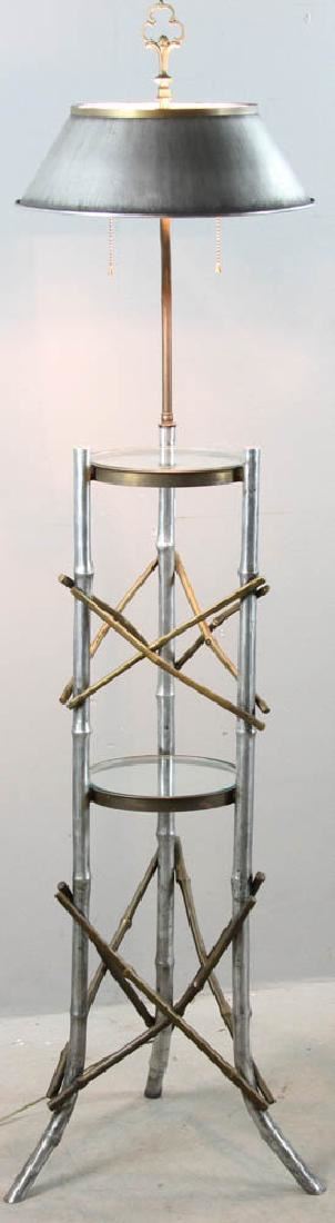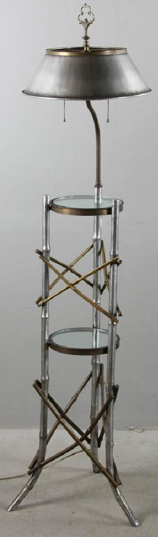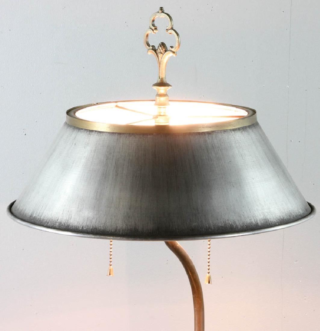 Metal floor lamp with tole shade, 58" H (overall). Provenance: West Palm Beach, Florida estate.
