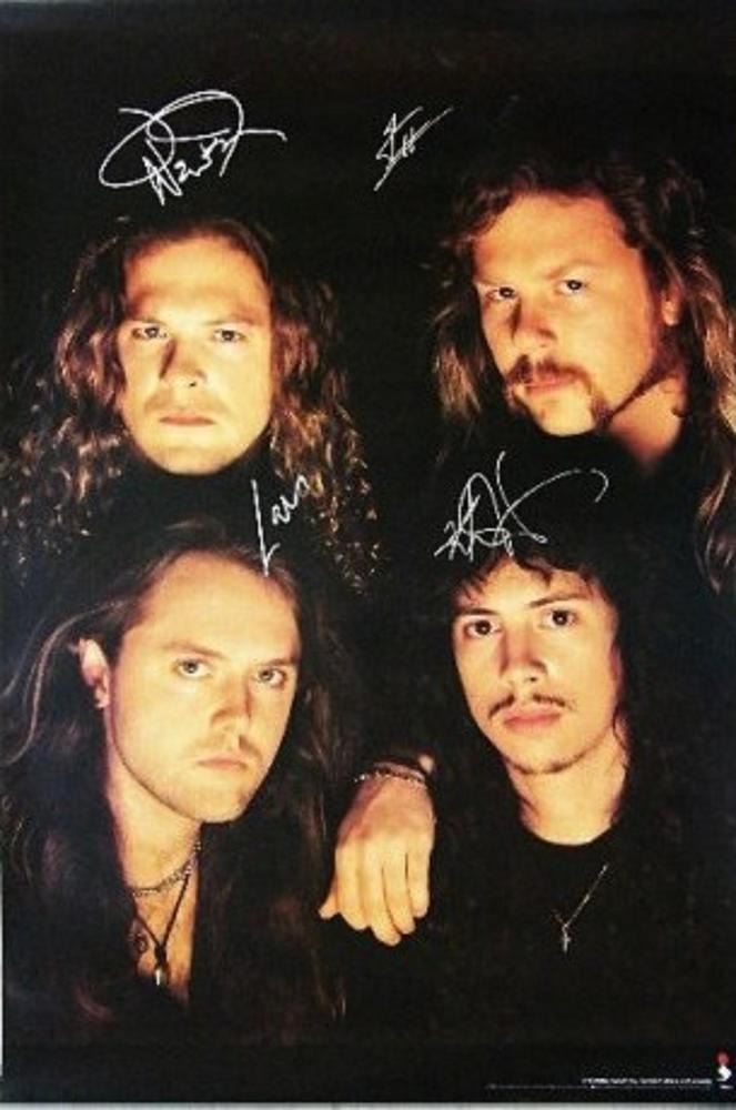 24 in. by 35 in. Metallica "Elektra Records" promotional poster autographed by James Hetfield, Lars Ulrich, Kirk Hammett and Jason Newsted.