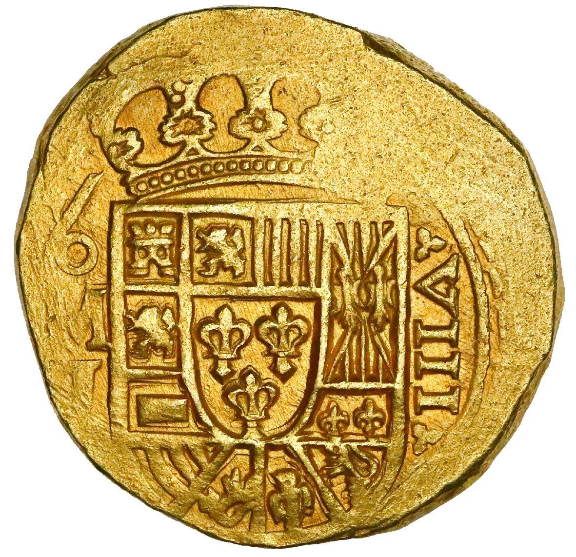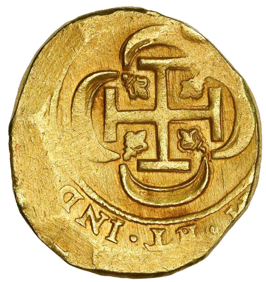 Mexico City, Mexico, cob 8 escudos, (171)5J, NGC MS 62, ex-1715 Fleet (designated on special label). S-M30; KM-57.2; Cal-2214. 26.97 grams. Choice full shield with bold full denomination to right, clear oMJ and bottom of 5 of date, most of crown, full but off-center cross with beveled periphery on that side, lightly red-toned all over. NGC #5939652-002. From the 1715 Fleet.
