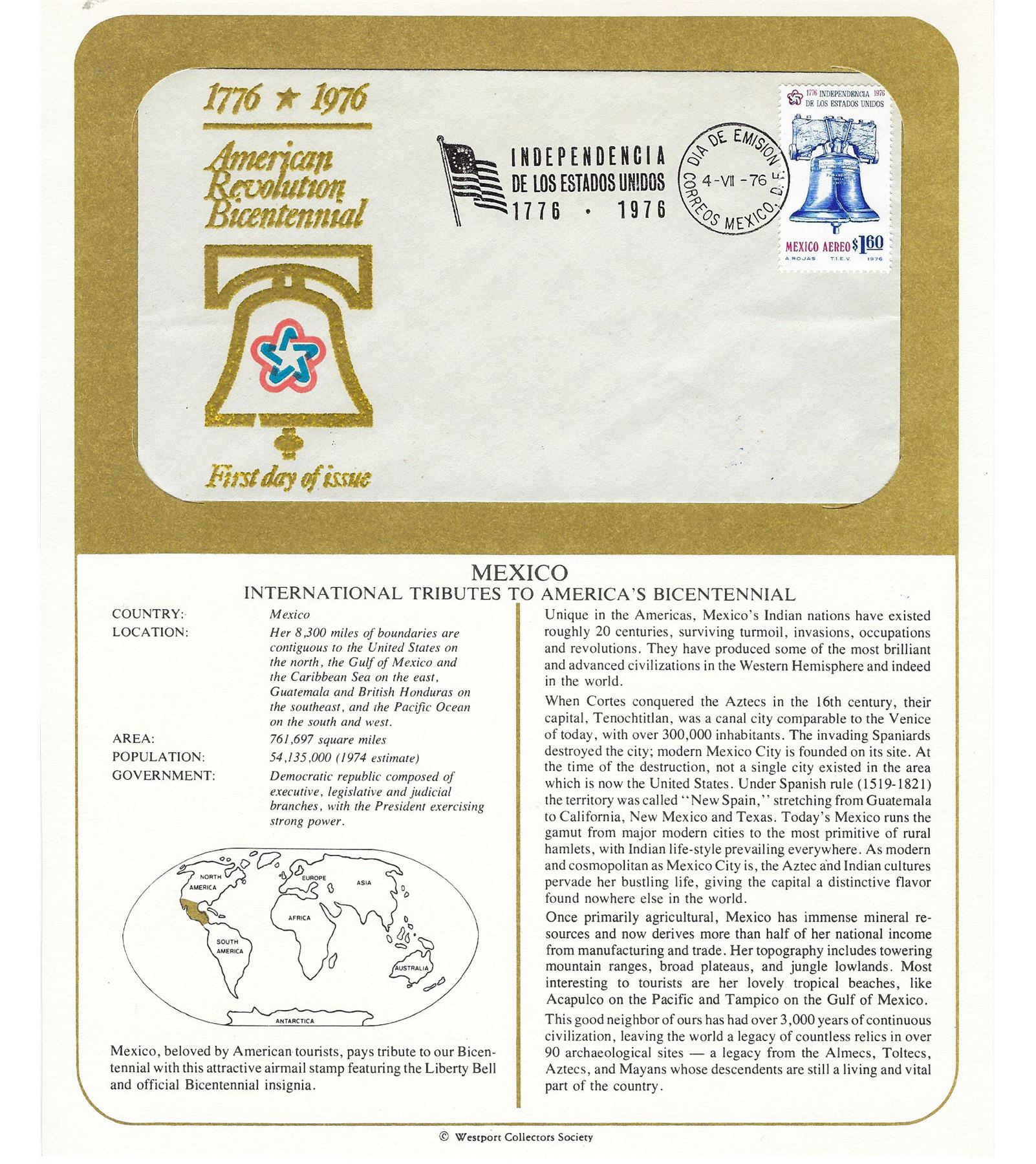Mexico FDC - Independencia De Los Estados Unidos - 4-VII-76