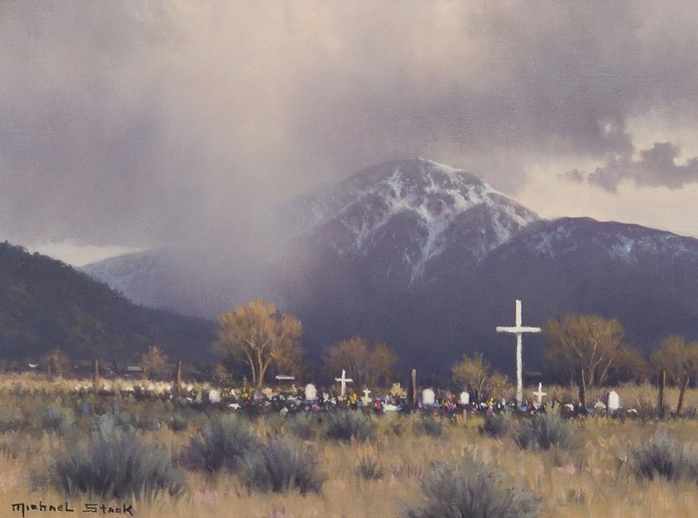 Artist: Michael Stack; Title: First Light of Winter; Medium: Oil on canvas; Dimensions: 12 x 16 inches; Signed: Signed lower left; Verso: Titled and dated 2003 verso; Framed/Base: 18 x 22 inches