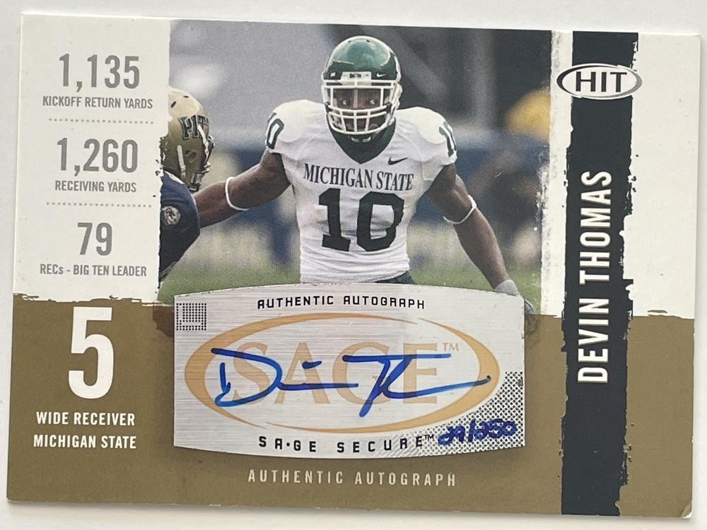 Michigan State Devin Thomas 2008 Sage #A68 signed trading card. 2x3 inches