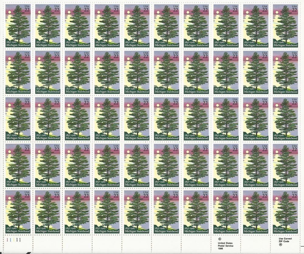 Michigan Statehood Sheet of 50 Stamps, U.S. #2246 - 1987