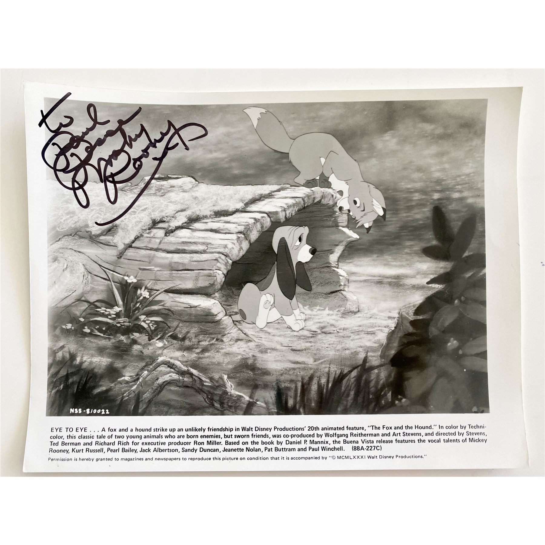 Mickey Rooney signed The Fox and the Hound photo. 8 x 10 inches.