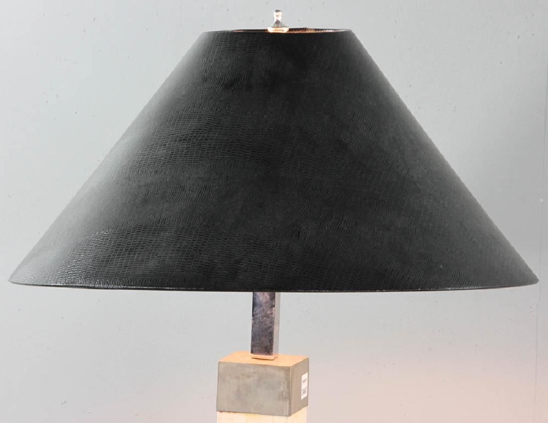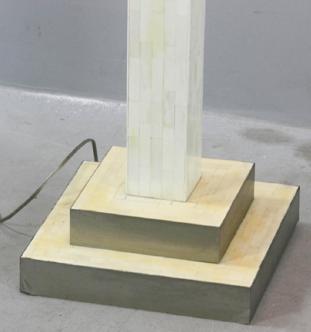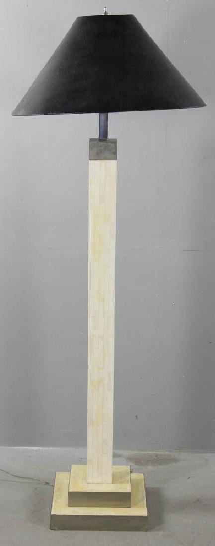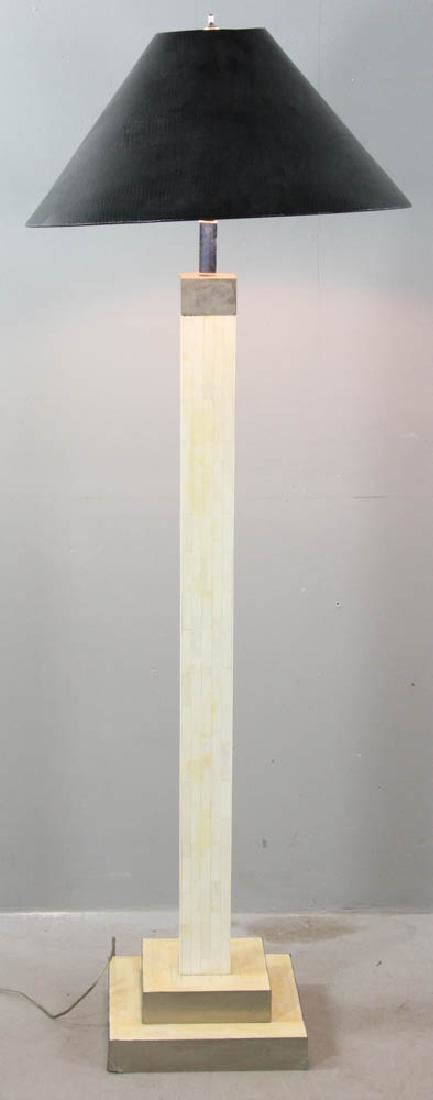 Mid-century modern floor lamp, bone and nickel plate, 62" H x 12" x 12".