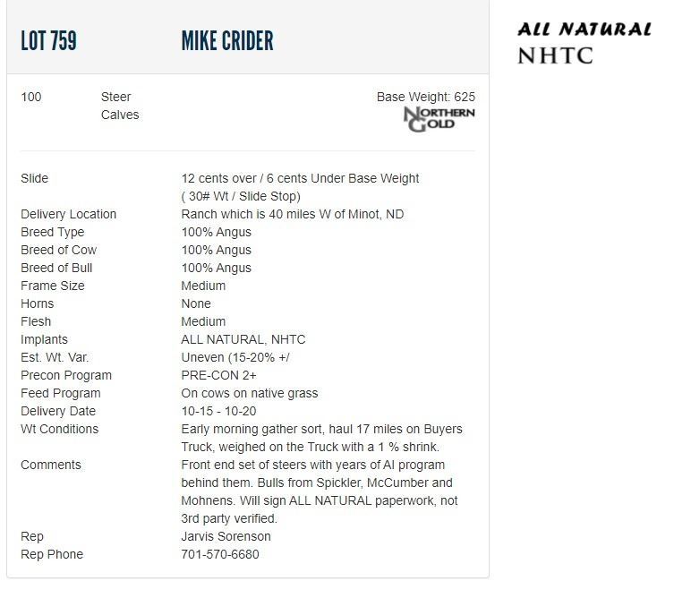 Delivery Location: Ranch which is 40 miles W of Minot, ND