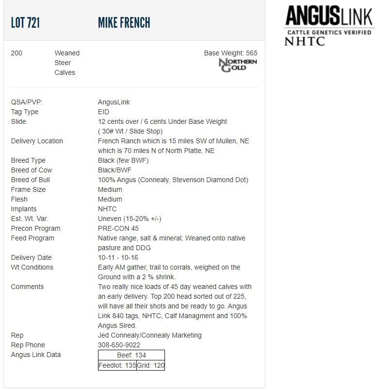 Mike French - 200 Weaned Steers; Base Weight: 565