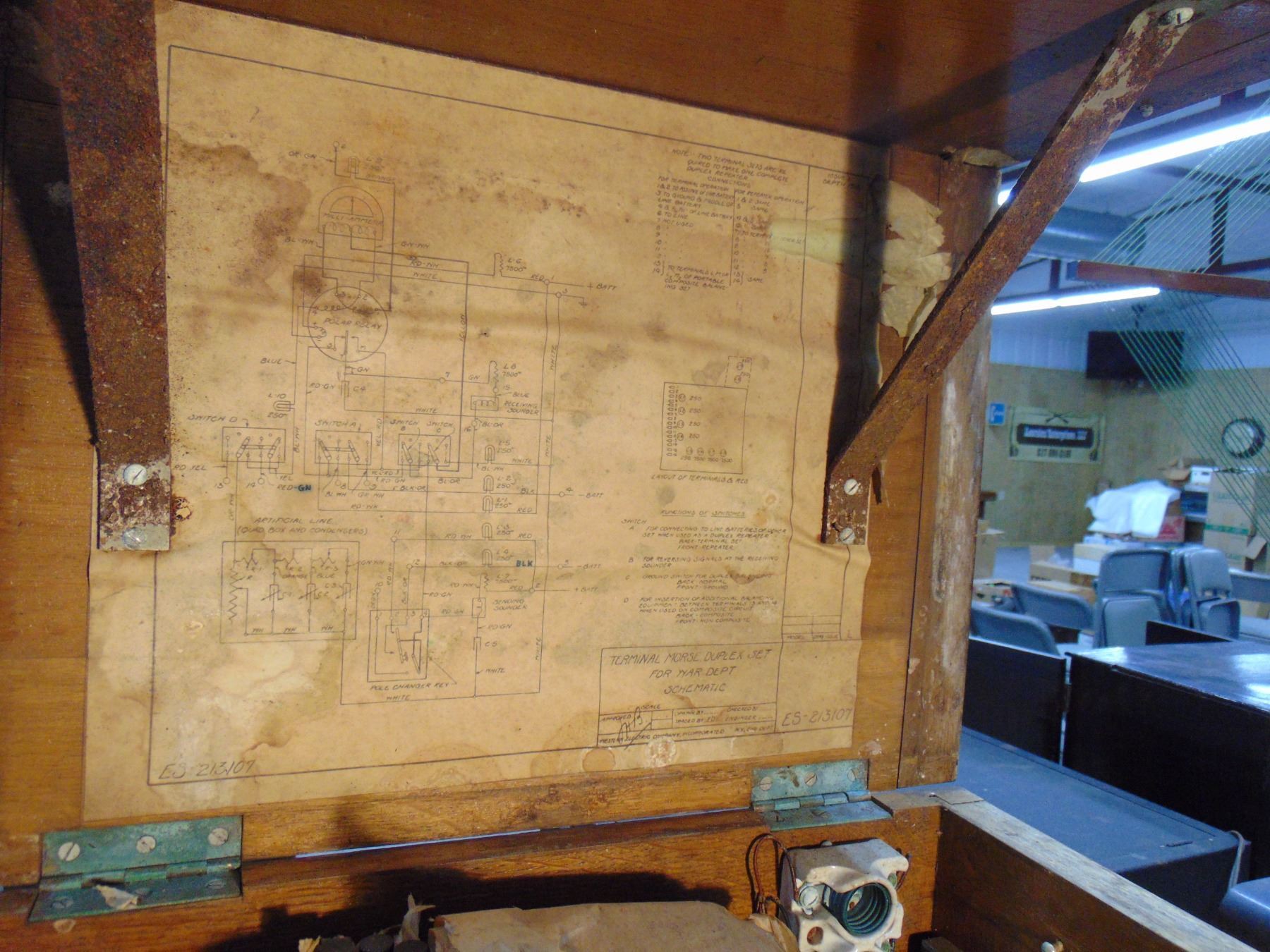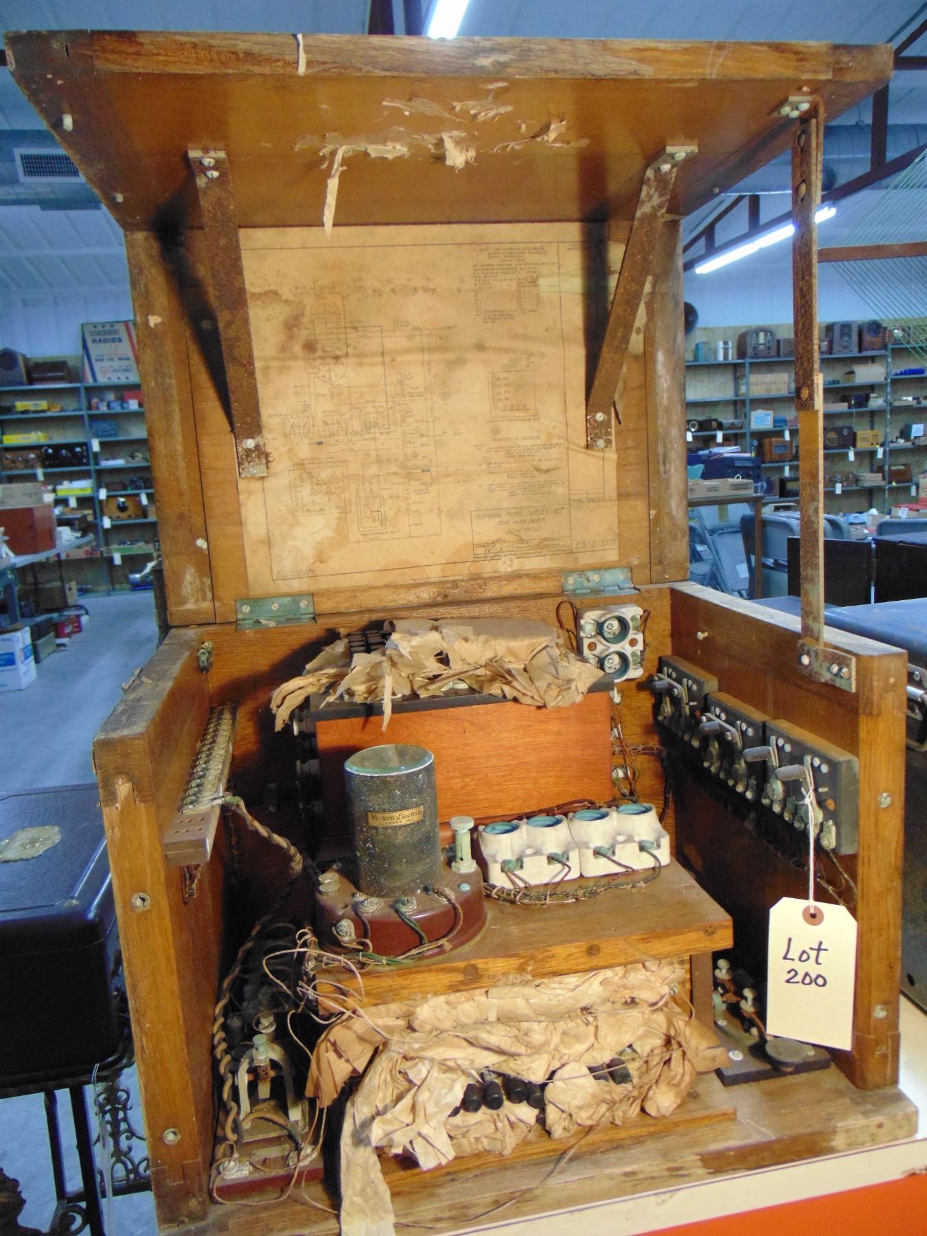 Western Electric WWI Morse telegraph duplex repeater; some original packing included; has been in wet area resulting in corrosion, cabinet damage, but all is restorable