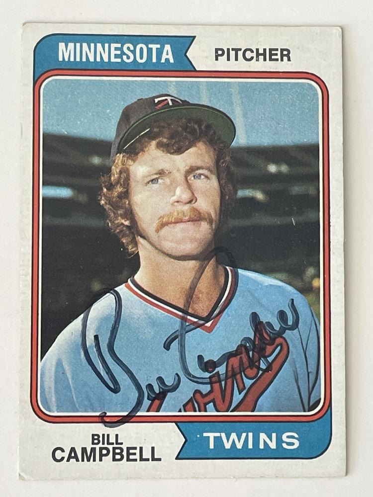 Minnesota Twins Bill Campbell signed 1974 Topps #26 trading card. 2x3 inches