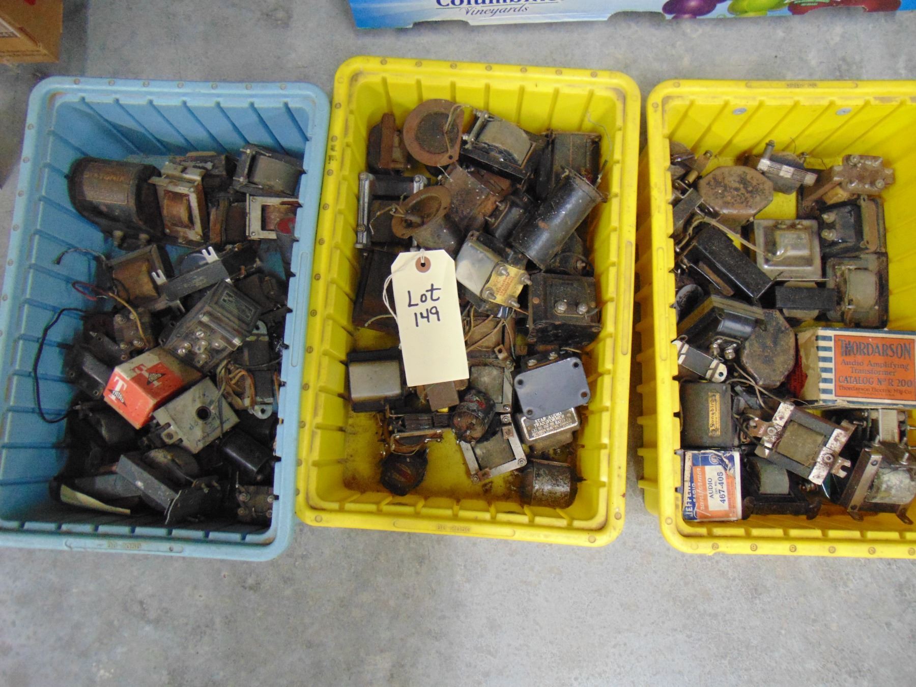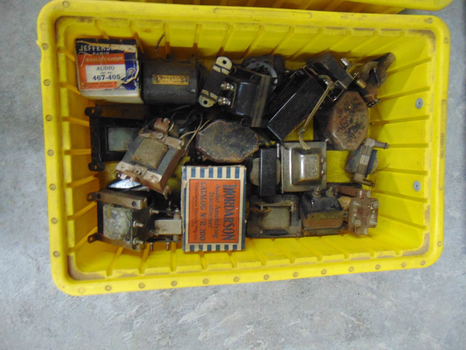 Three boxes of various early interstage transformers