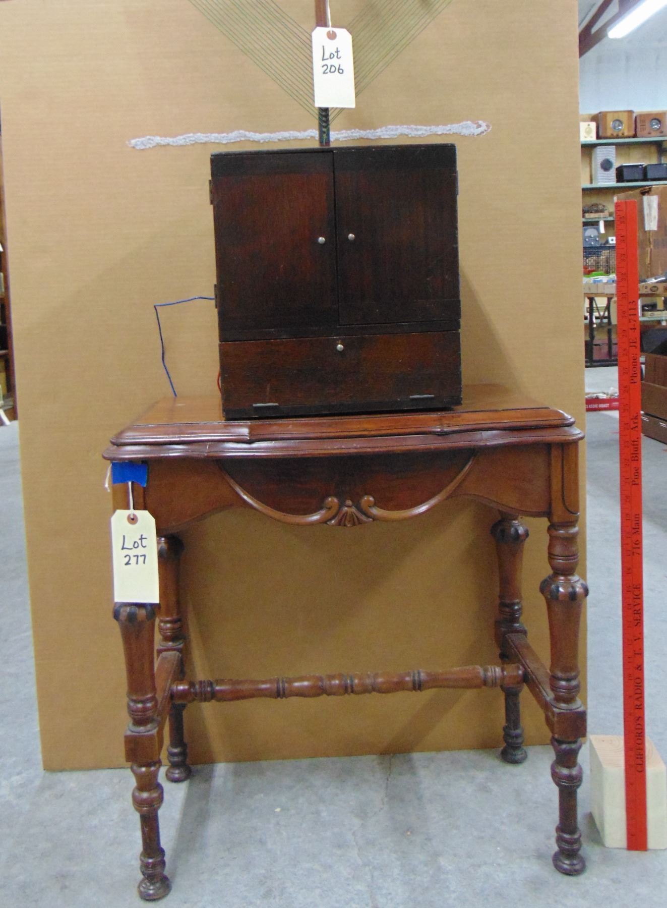 Small wood table; appears to have been made from an early 30's gate leg console radio; would make nice radio table