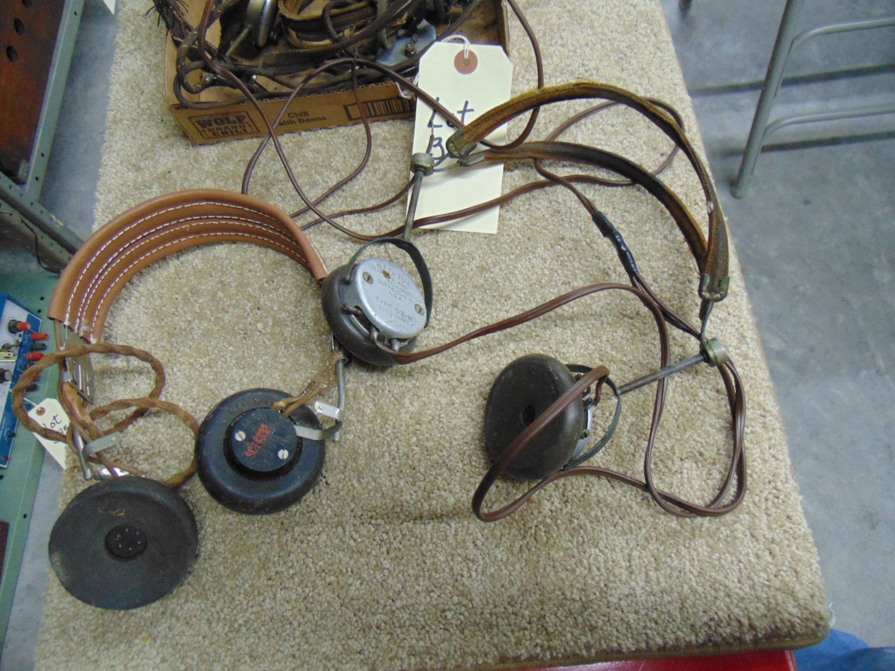 Flat of misc. vintage headphones; includes Crosley and Federal