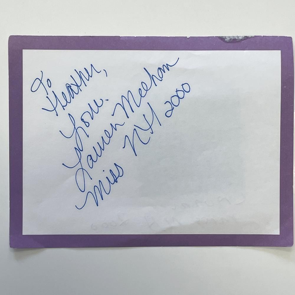 Miss New Hampshire Lauren Meehan signed note.5x4 inches