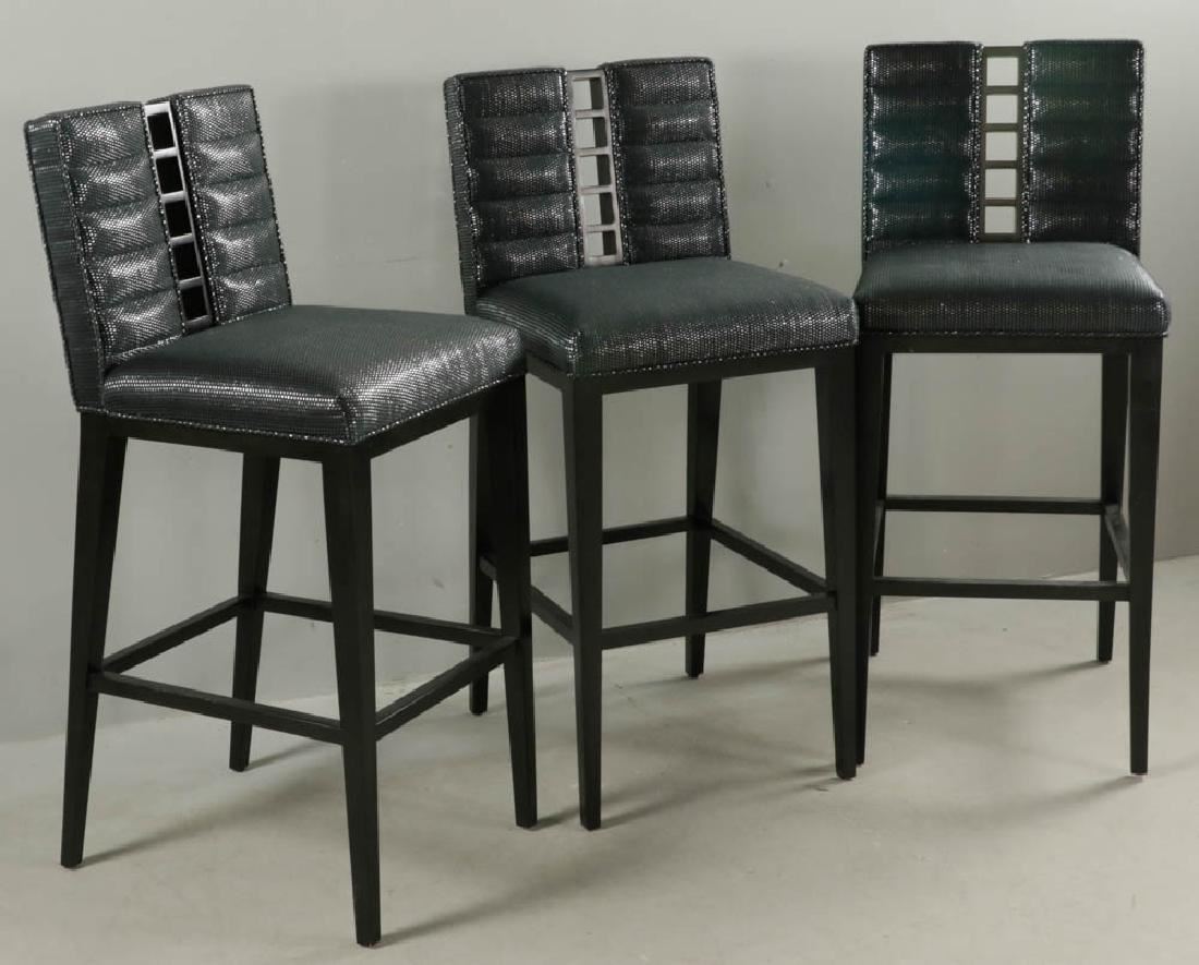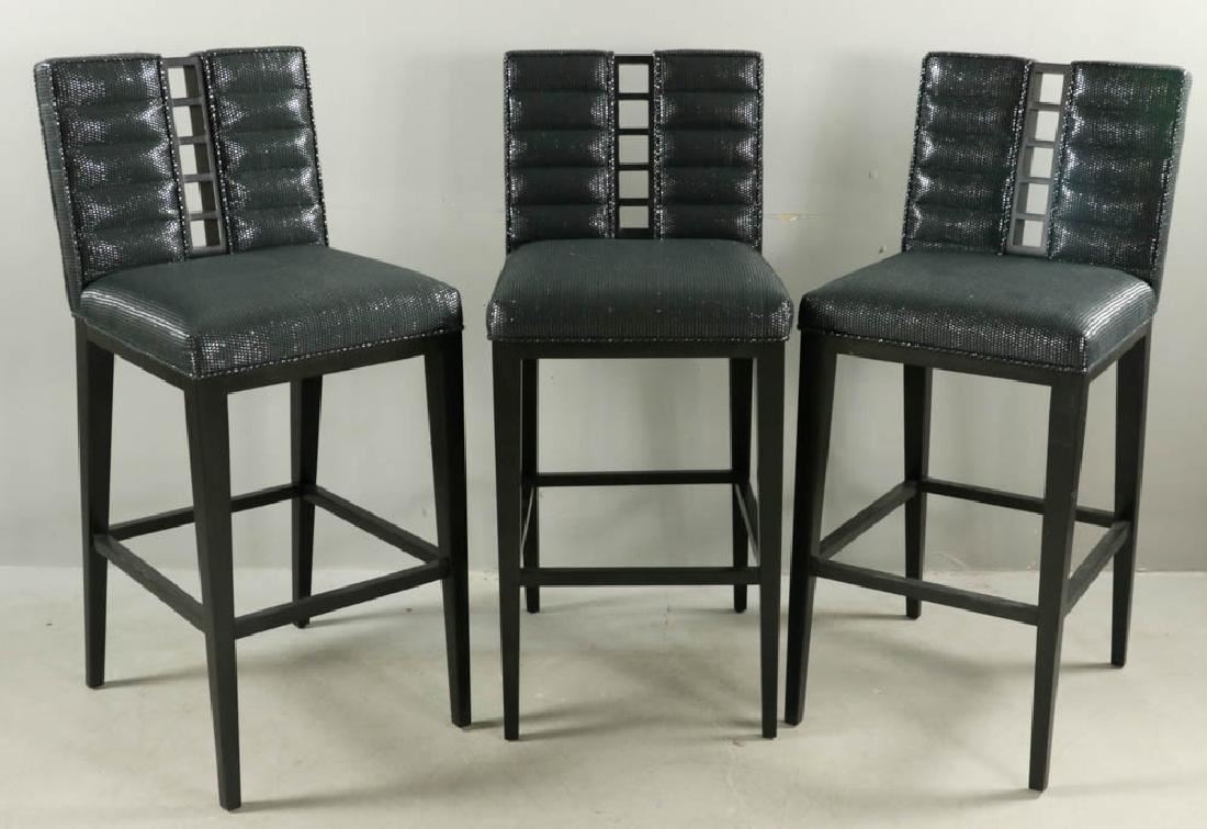 Modern upholstered bar chairs with painted black finish, 43 " high overall, seat height 30 1/2", seats measure 18 1/2" x 15 1/2". Provenance: Greenbaum estate.