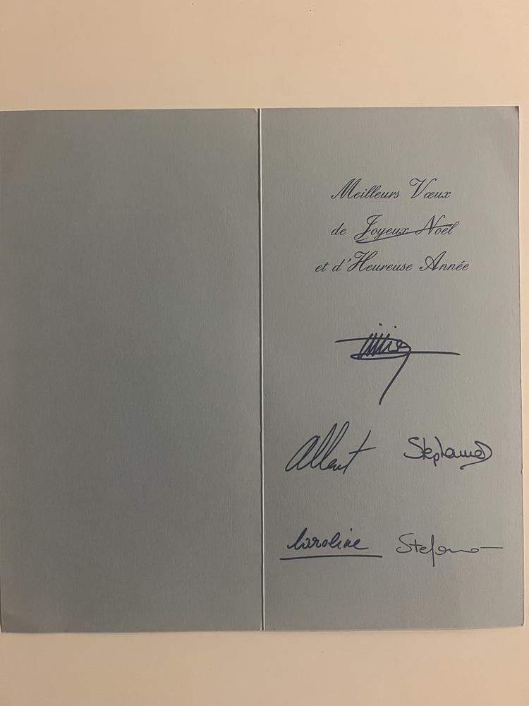 Monaco Royal Family Signed New Year's Card Autographed by Prince Albert II, Princess Caroline, Princess Stephanie, Prince Rainier III.4x9 inches