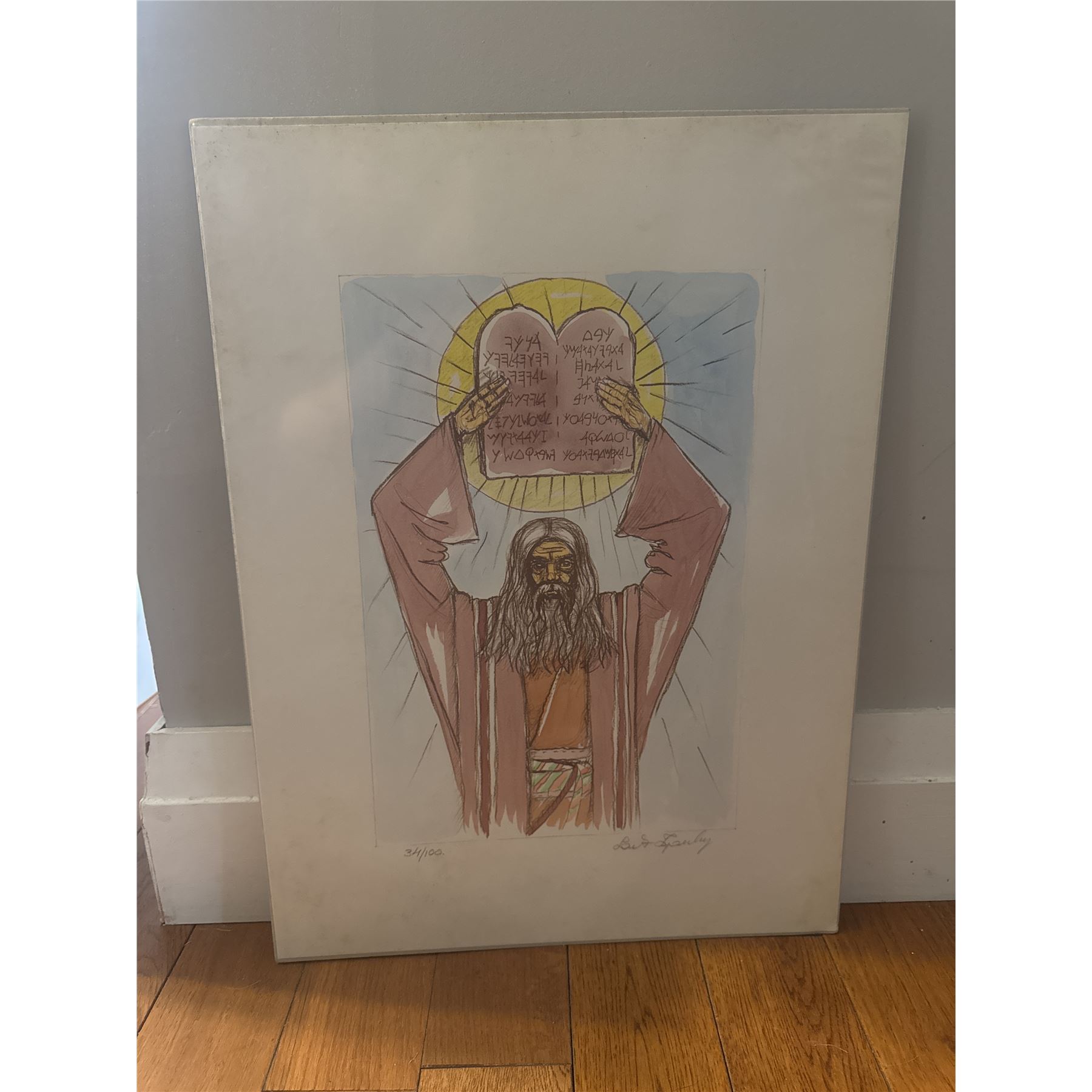 Moses 10 Commandments drawing 34/100 singed bottom right corner 19 inches tall 14 inches wide
