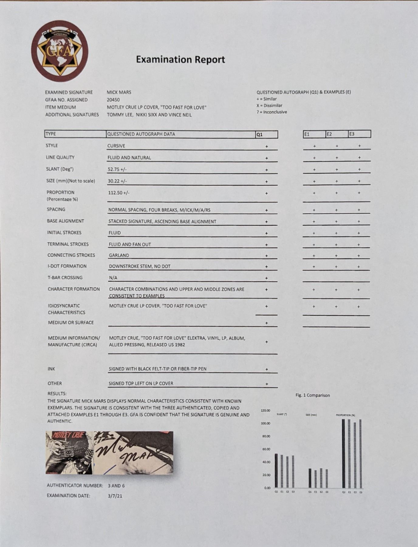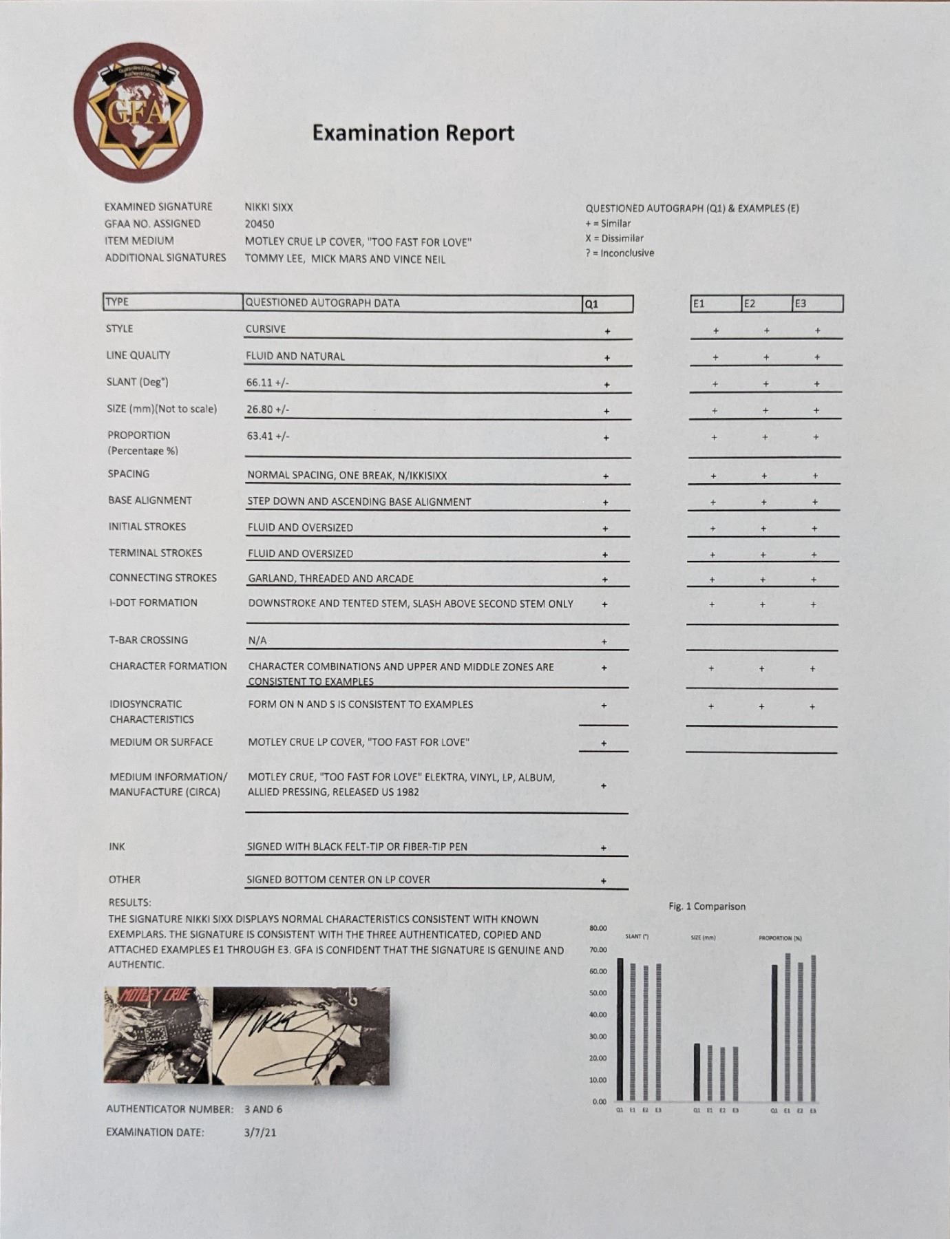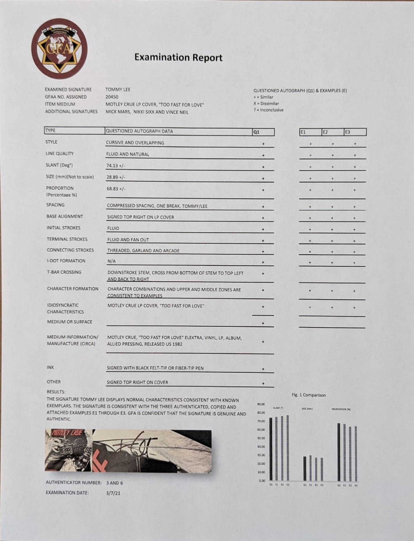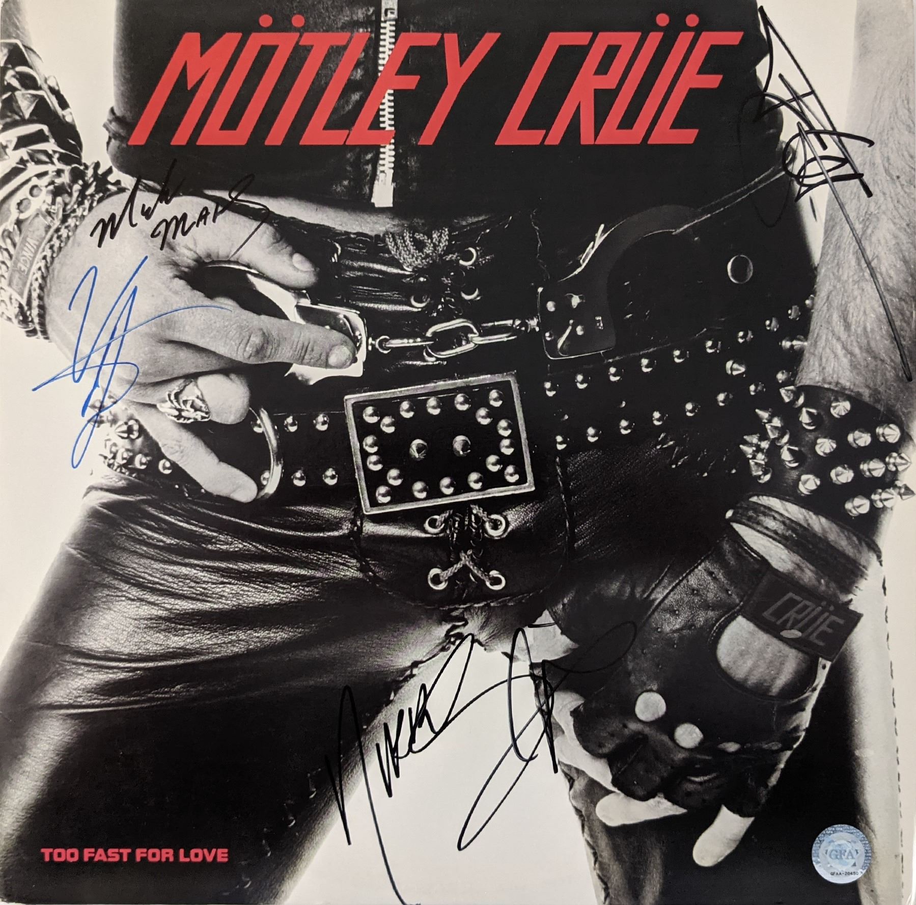Motley Crue Too Fast For Love Album signed by: Mick Mars, Tommy Lee, Nikki Sixx, Vince Neil - 12x12 - Vinyl Included. GFA Authenticated