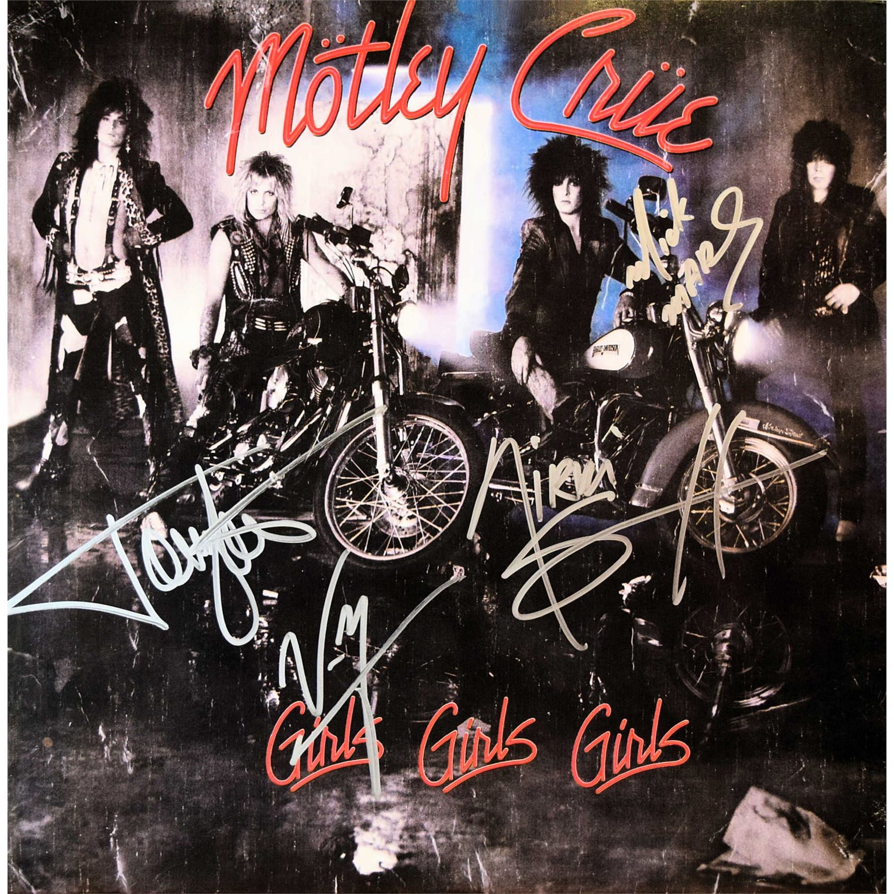 Motley Crue's 1987 Girls, Girls, Girls album. Signed: Mick Mars, Tommy Lee, Nikki Sixx, and Vince Neil.