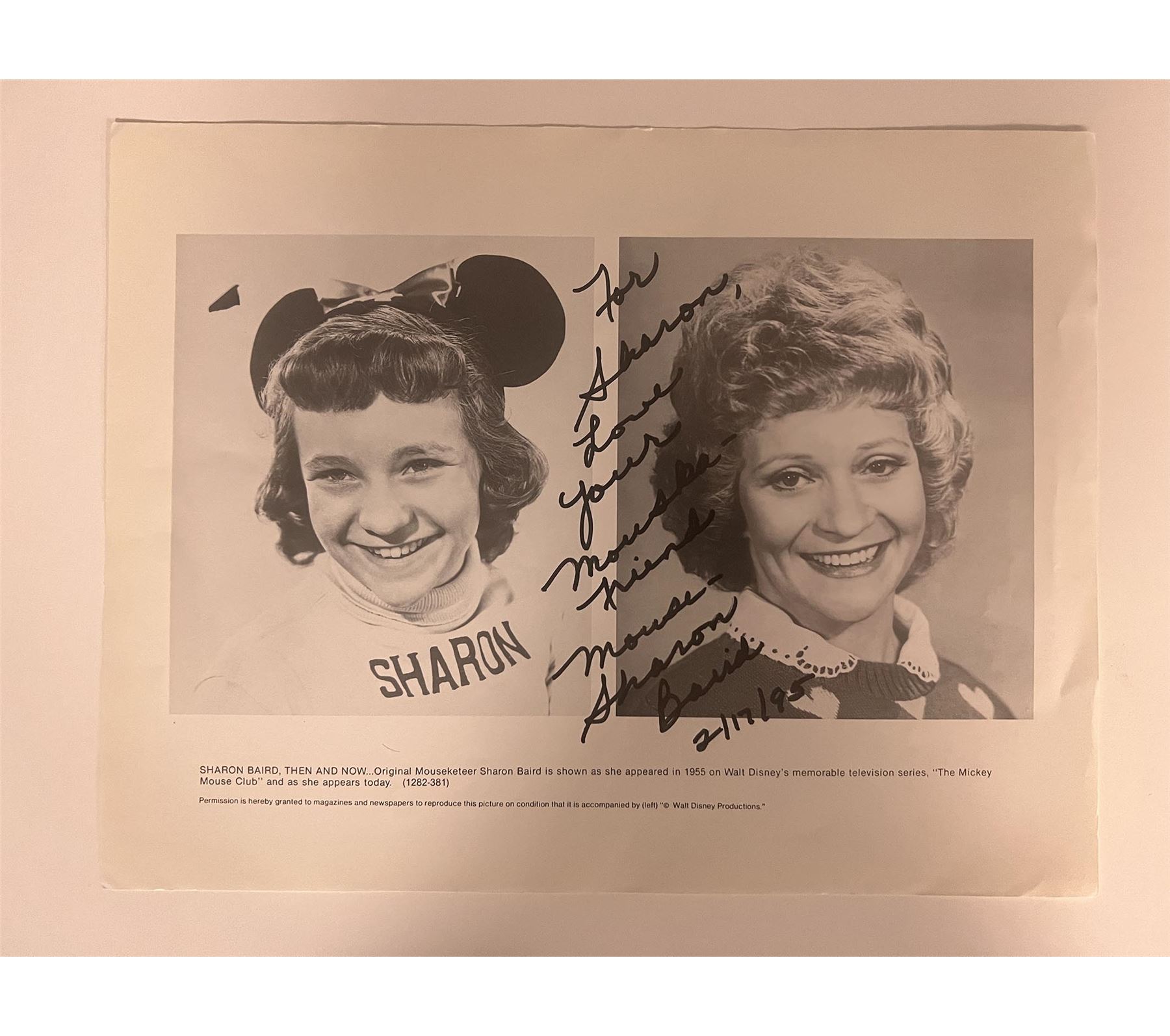 Mousketeer Sharon Baird signed photo.11x9 inches