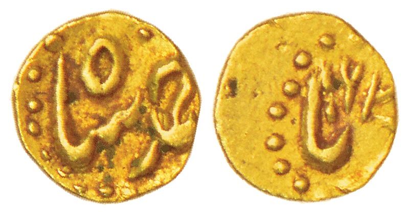 Mughals: Ahmad Shah Bahadur (1748-1754 AD), gold ½ fanam, Karpa mint, AH (11)62, unlisted in KM, 0.18g.