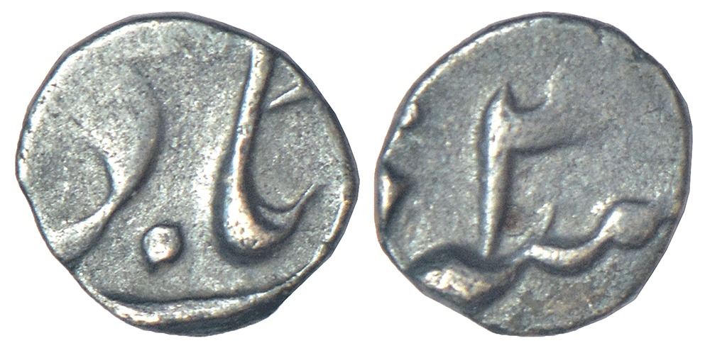 Ahmad Shah Bahadur/Alamgir II, silver 1/16 rupee (1 anna), mint off flan, attributed to Murshidabad by style, RY 4, 0.69g.
