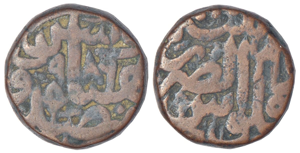 Akbar (1556-1605 AD) - copper dam, Dar al-Zarb Patna mint, AH 986, fully readable legend on both sides, 19.32g.