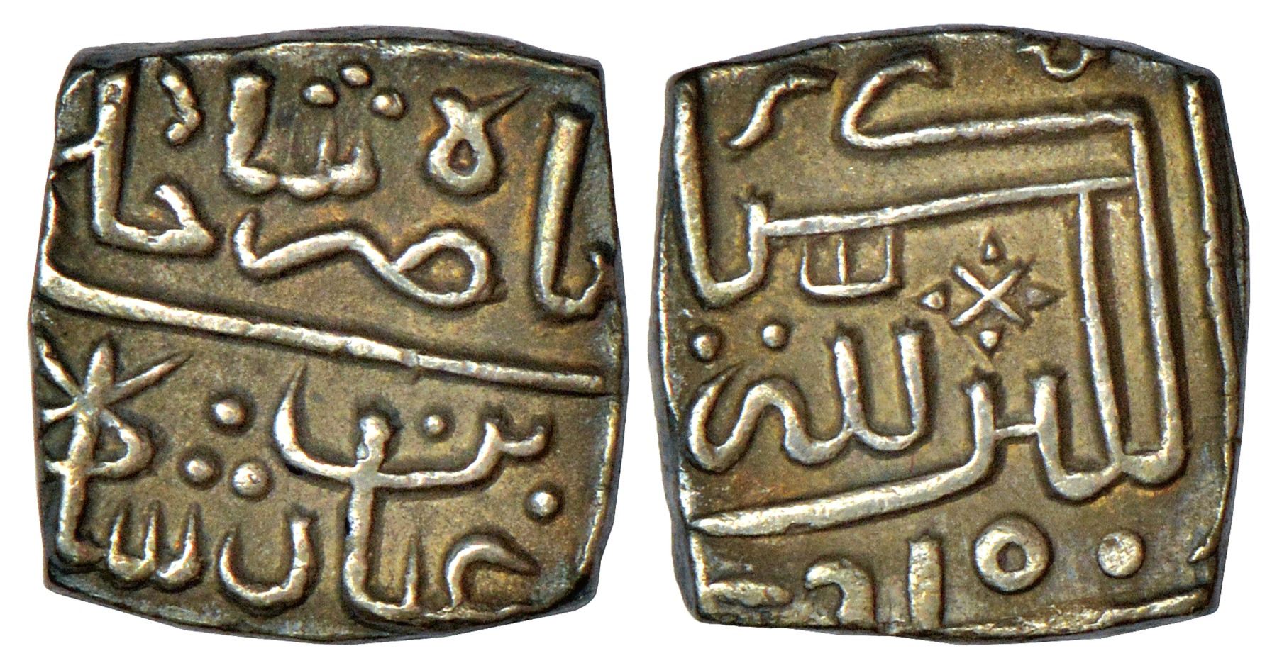 Sultans of Malwa - Silver square ¼ tanka of Nasir Shah (1500-1510 AD), AH 910, G&G M112, 2.53g. Obv: Arabic legend nasir shah khalji bin ghiyath shah. Rev: Arabic legend al-kibriya lillah.
