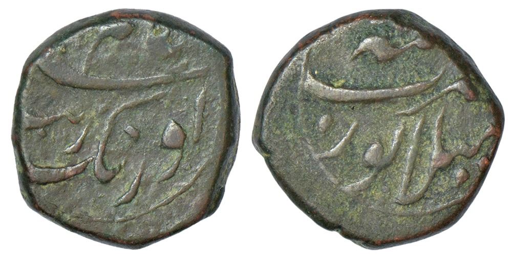 Aurangzeb (1658-1707 AD), copper ½ paisa, Mailapur mint, with legend Aurangzeb Alamgir on obverse and legend Zarb Mailapur Sanah on reverse, KM 283.5, 6.76g.