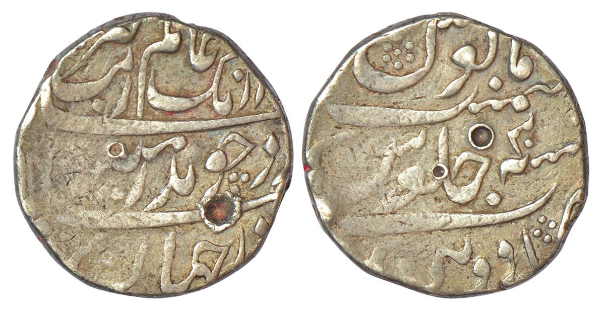 Mughals: Aurangzeb (1658-1707 AD), silver rupee, Adoni mint (fully visible), 'Badar-e-munir' couplet, RY 30, KM 300.1 (listed in KM as Advani), 11.49g.
