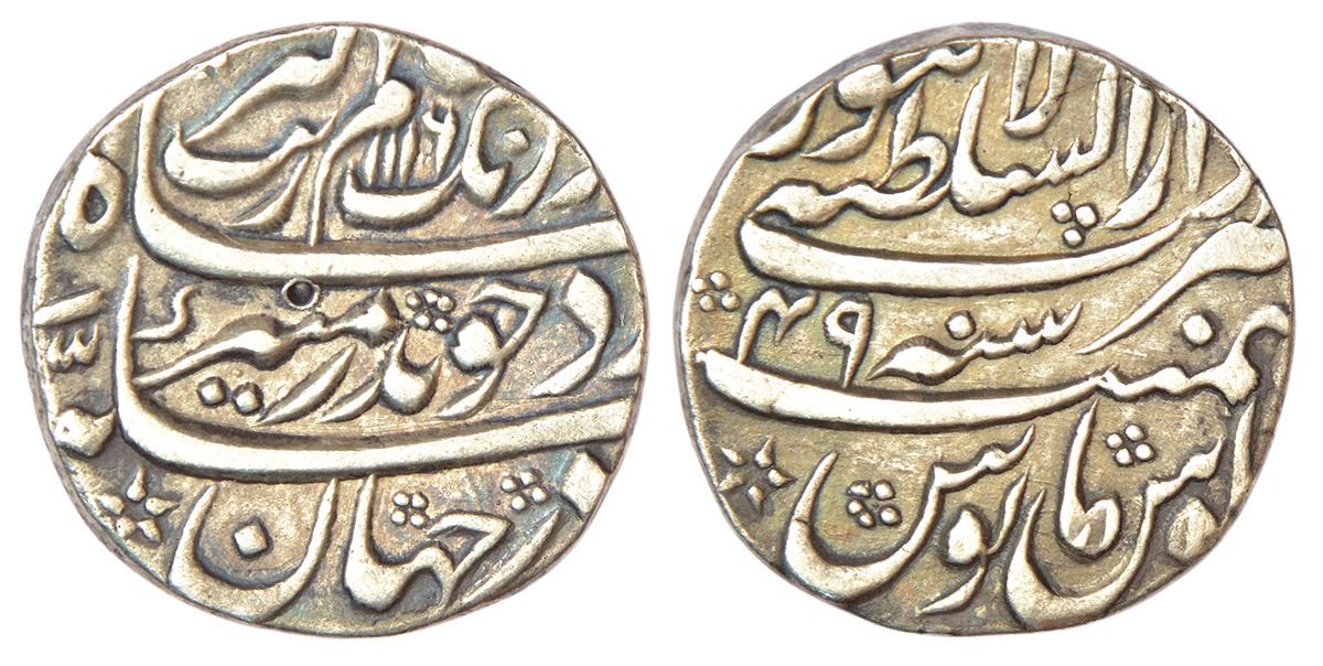 Aurangzeb (1658-1707 AD), silver rupee, Dar us-Sultanat Lahore mint, 'Badar-e-munir' couplet, AH 1116/RY 49, KM 300.53, 11.31g.