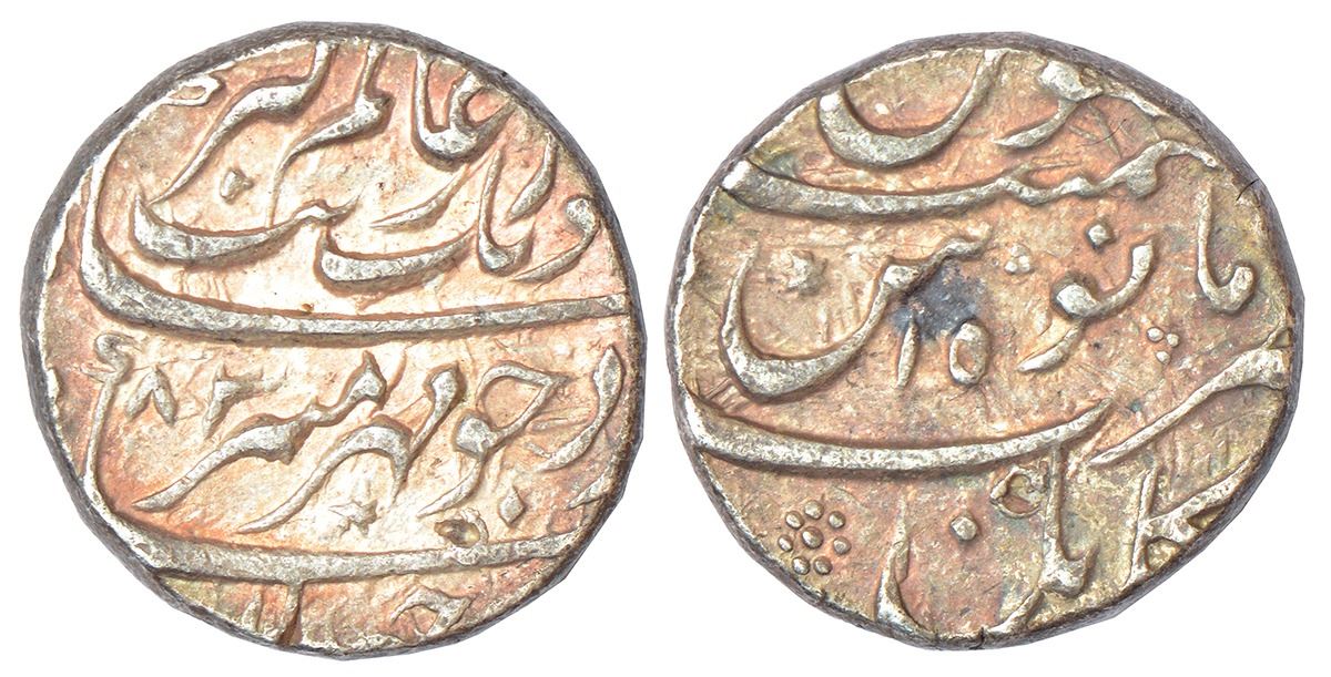 Aurangzeb (1658-1707 AD), silver rupee, Kabul mint, without mint epithet, 'Mihr-e-munir' couplet, AH (10)83/RY 15, KM 300.109, 11.48g.