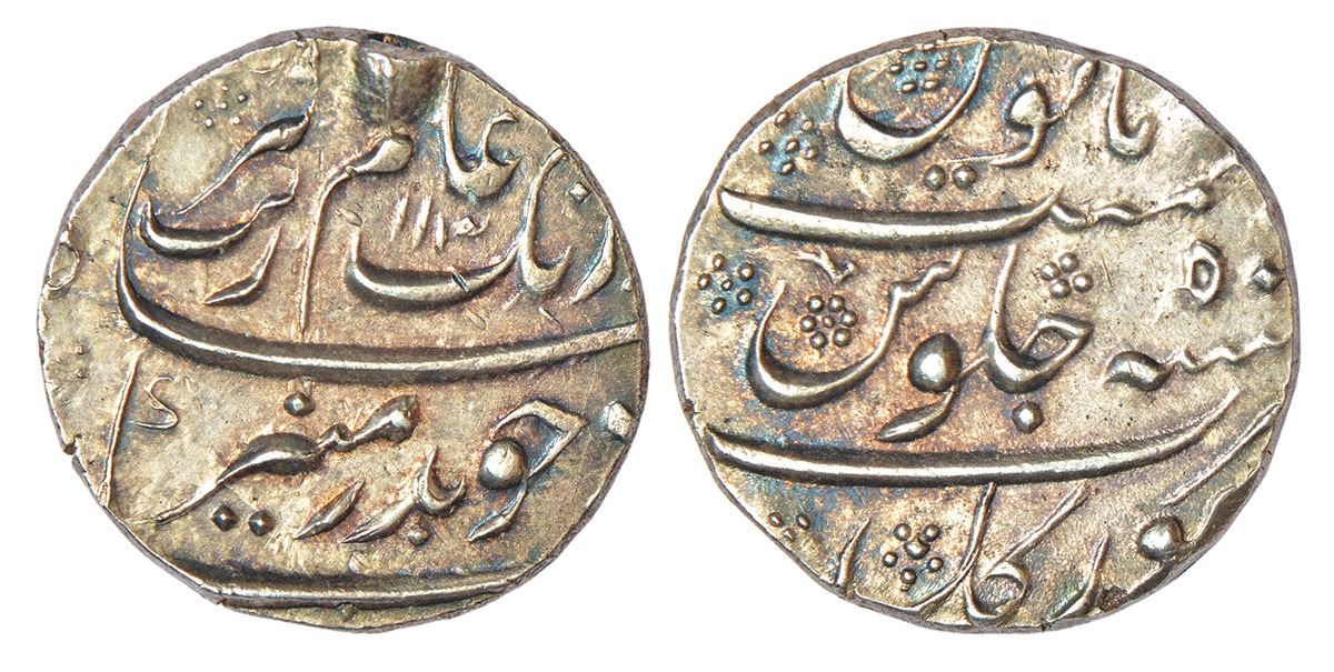 Mughals: Aurangzeb (1658-1707 AD), silver rupee, Torgal mint (fully visible), 'Badar-e-munir' couplet, AH 1110/RY 50 (sic), KM 300.88, 11.48g.