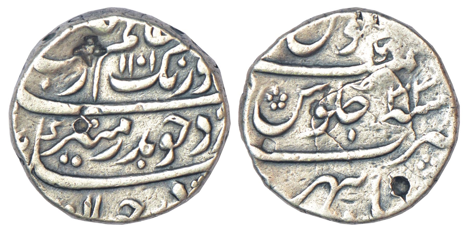 Aurangzeb (1658-1707 AD), silver rupee, Sambhar mint, 'Badar-e-munir' couplet, AH 1101/RY 33, KM 300.79, 11.41g.