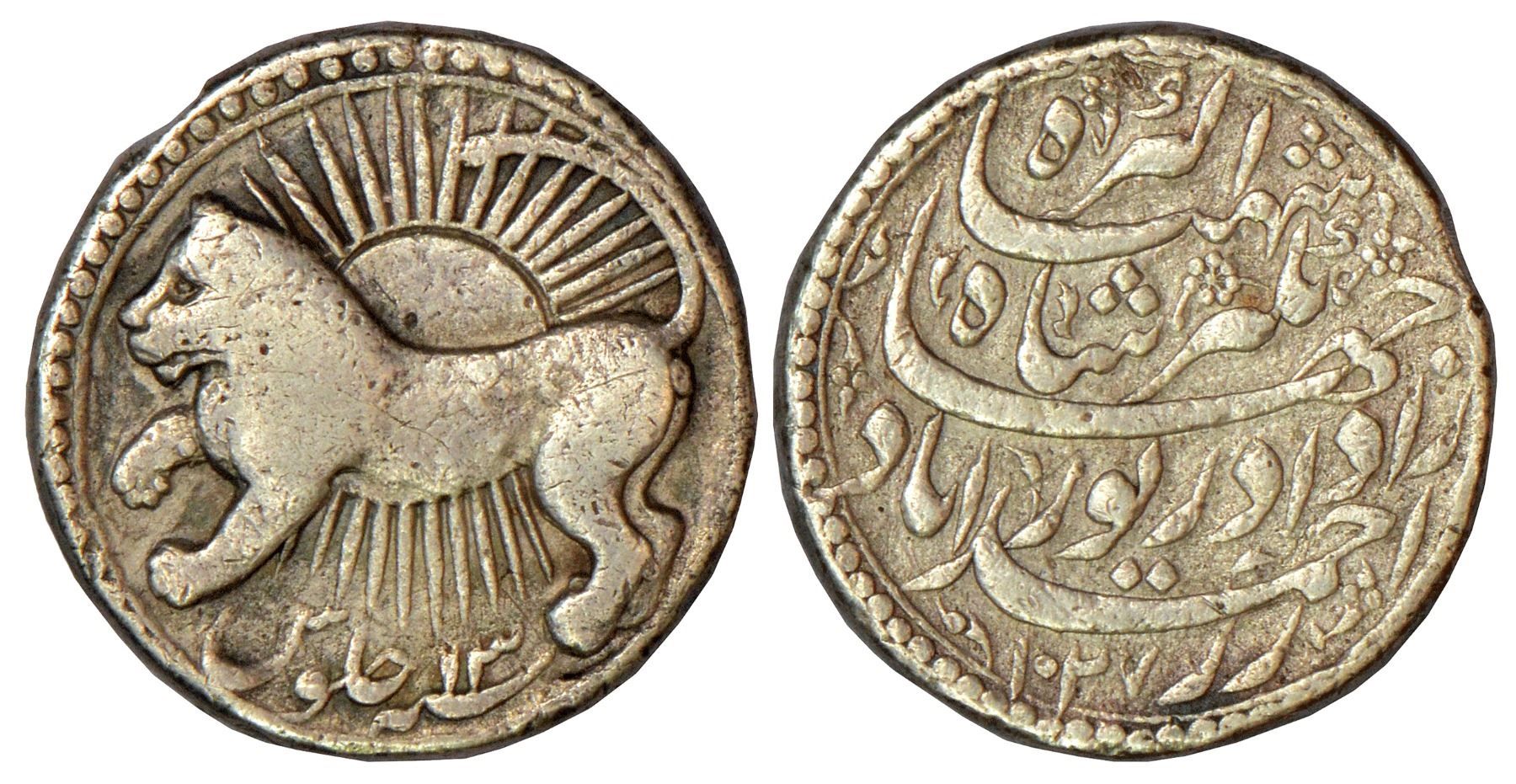 Jahangir (1605-1627 AD), silver zodiacal rupee, 'Leo' sign, Ahmadabad mint, AH 1027/RY 13, KM 150.11, 11.10g. Obv: Sign of Leo (Lion) against a solar backdrop, Farsi inscription Sanah Julus 13 below. Rev: Farsi inscription Zar ra Ahmadabad Dad Zewar Jahangir Shah Shahanshah Akbar, (Gold was made into a jewel at Ahmadabad by King of Kings Jahangir the son of King Akbar); slight test cut on edge.