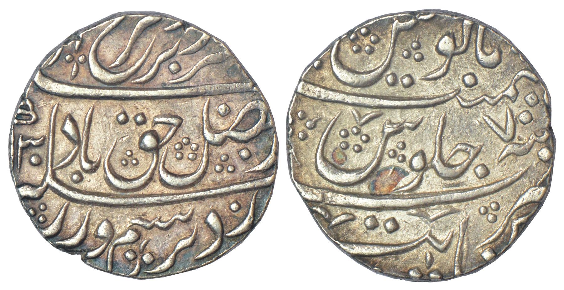 Farrukhsiyar (1713-1719 AD), silver rupee, Khambayat mint, AH (11)30/RY 7, KM 377.41, 11.57g.