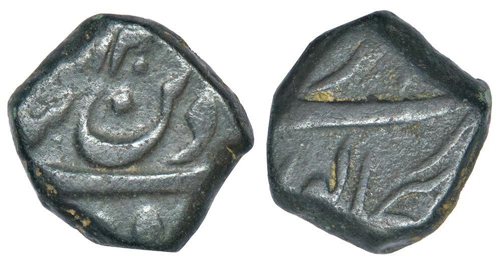 Kam Bakhsh (1707-1708 AD), copper ½ paisa, Dar uz- Zafar Bijapur mint, AH 1120, with word 'Din Panah' (The title of Kam Bakhsh), denomination unlisted in major sources, 6.76g.