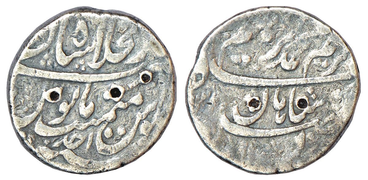 Muhammad Ibrahim (1720 AD), silver rupee, Dar ul-Khilafat Shahjahanabad mint, 'Ba Fazle-Karim' couplet, AH (11)31/RY Ahd, KM 426.1, 11.28g. Obv: Persian legend sikka-i-zad dar jahan ba fazle karim, shahaane shah muhammad ibrahim. Rev: Mint-name, RY and Jalus Maimanat Manus.