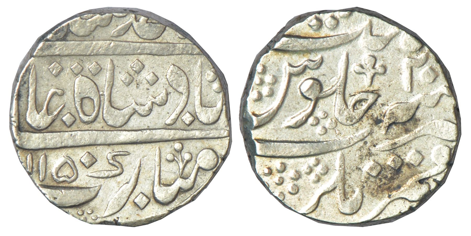 Muhammad Shah (1719-1748 AD), silver rupee, Qamarnagar mint, AH 1150/RY 20, KM 436.51, 11.48g.