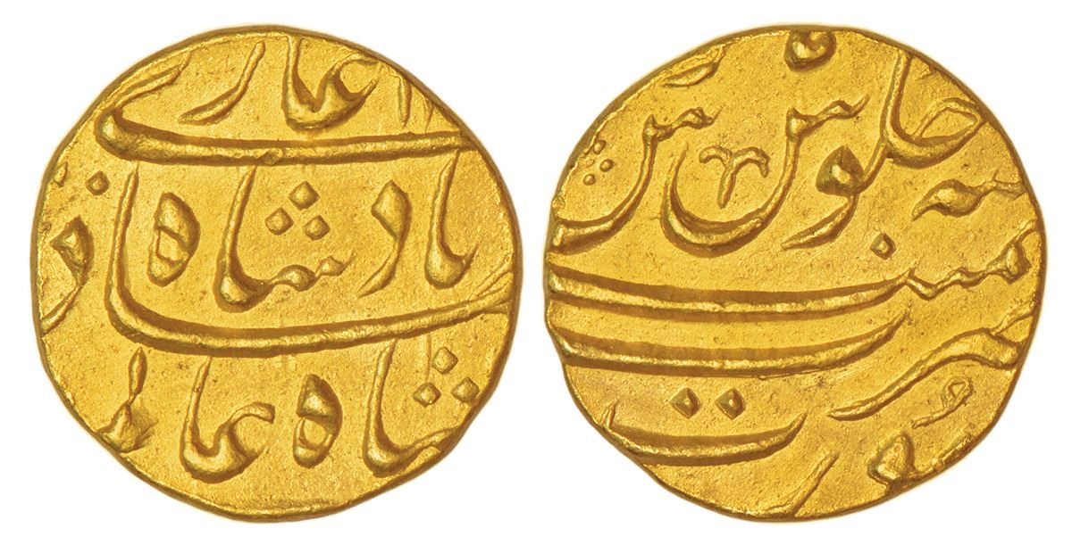 Mughals: Shah Alam Bahadur (1707-1712 AD), gold mohur, Surat mint, KM 356.14, 11.06g.