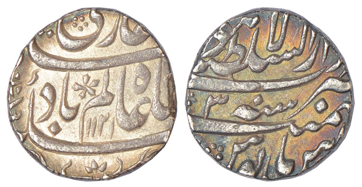 Shah Alam Bahadur (1707-1712 AD), silver rupee, Dar us-Sultanat Lahore mint, AH 1121/RY 3, KM 347.13, 11.43g.