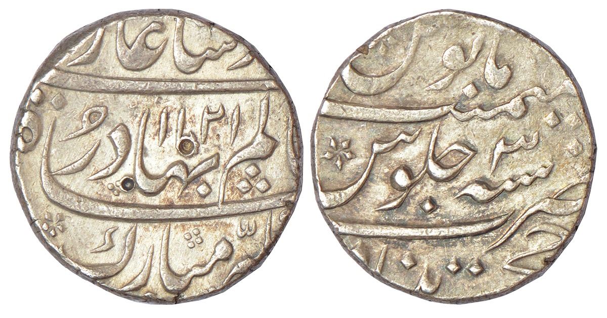 Shah Alam Bahadur (1707-1712 AD), silver rupee, Khujista Bunyad mint, AH 1121/RY 3, KM 348.25, 11.46g.