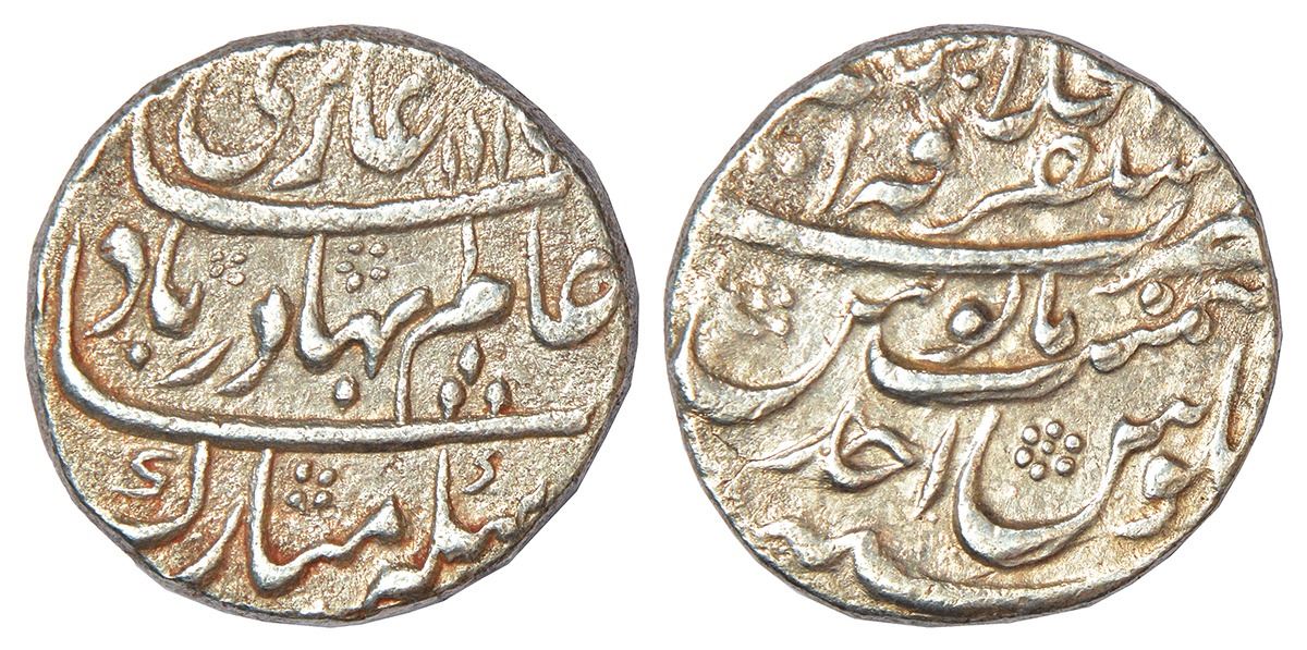 Shah Alam Bahadur (1707-1712 AD), silver rupee, Mustaqir ul-khilafat Ajmer mint at top, AH 1119/RY Ahd, KM 348.4, 11.22g.