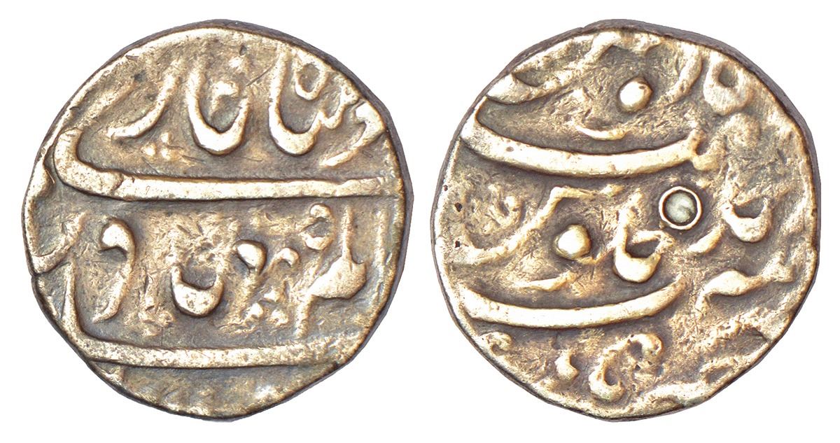Mughals: Shah Alam Bahadur (1707-1712 AD), silver rupee, Nusratgarh mint, RY Ahd, KM 348.38, 11.40g.